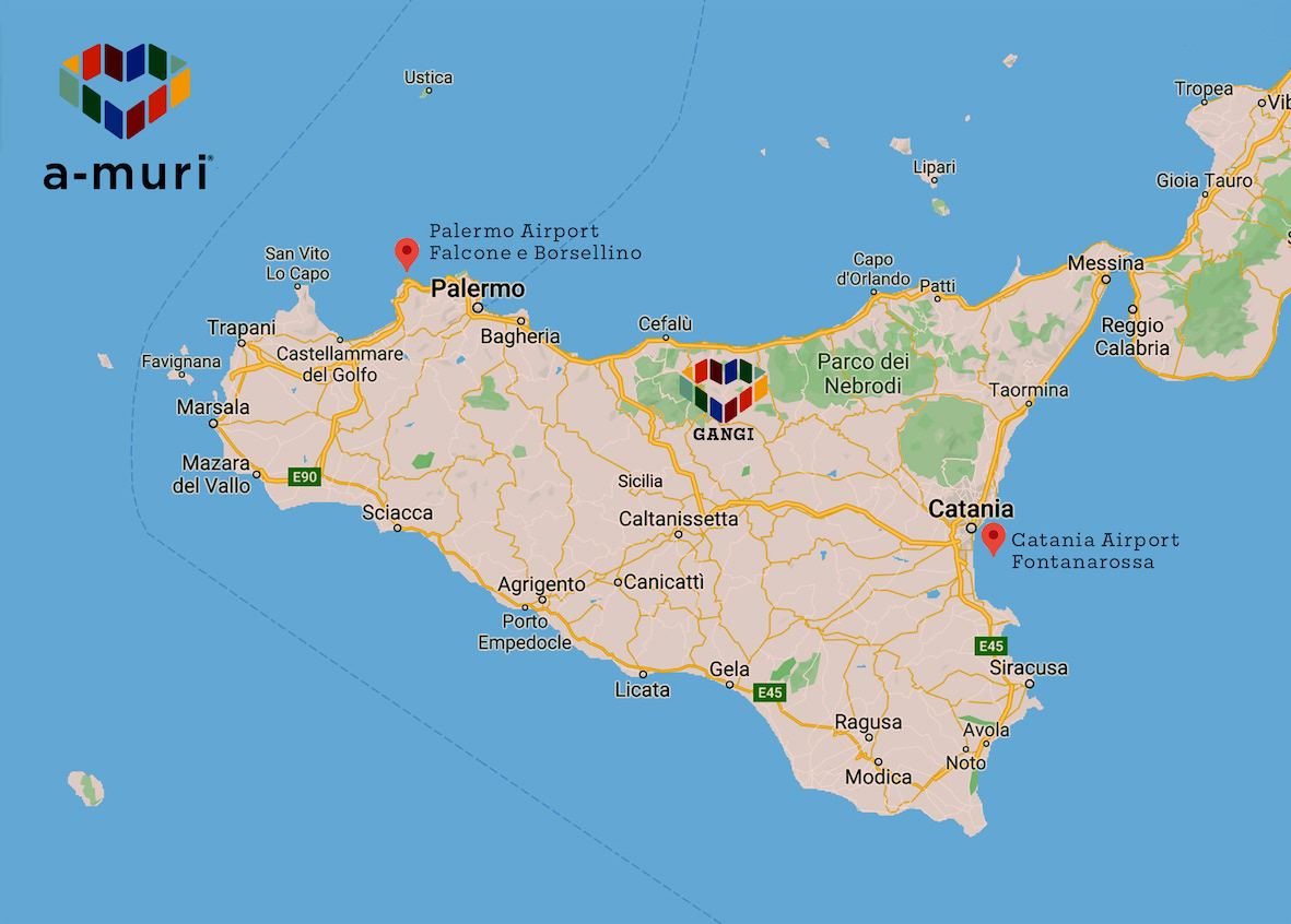 If you arrive from PALERMO, take the A19 highway towards Catania. When you reach the junction with the highway to Messina, keep on the right and continue in the direction of Catania until the exit for "Irosa". Then proceed for the SP138 and SP11 following the indications for Gangi. It will take about 1 hour and 44 minutes for a total of 119 km